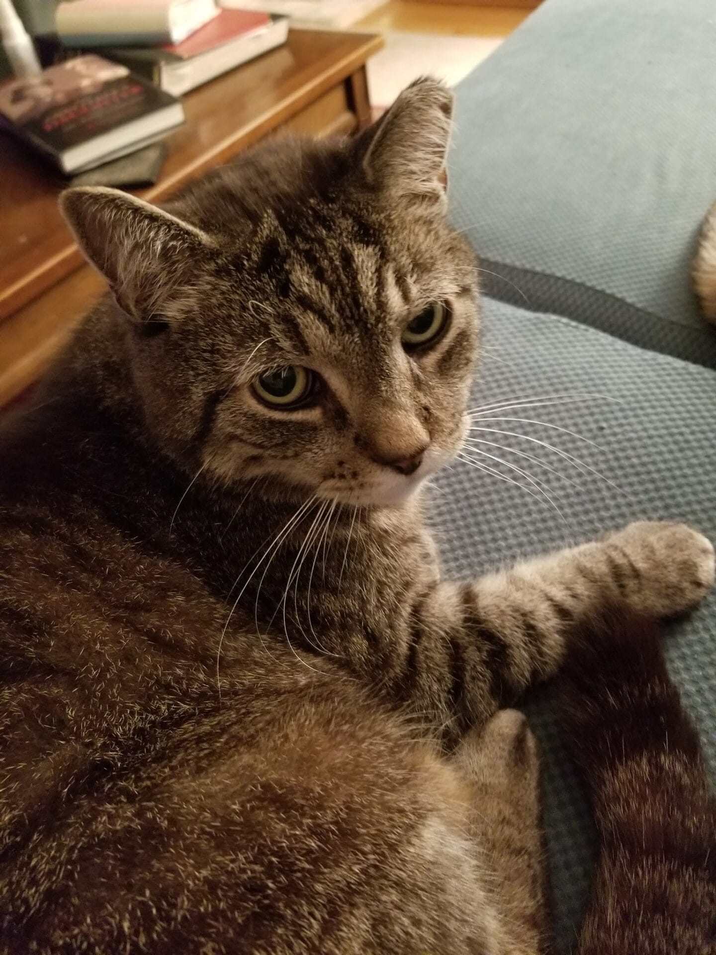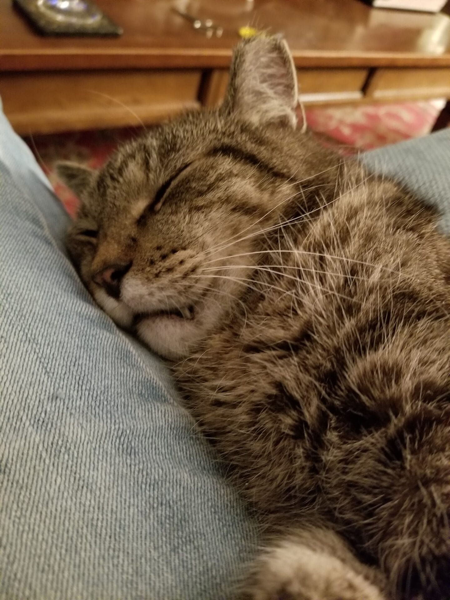 At night he and Ziggy would lead each other on a merry chase through the house, up the stairs, over the bed (with me in it trying to get some sleep) back down the stairs and back up again. This game continued until one of them got tired or decided it was time for a mutual grooming session. I loved watching them do that. Could never get a video though. It’s like they just felt the camera pointed at them and stopped. Ditto when they had their play fight sessions. It was maddening!